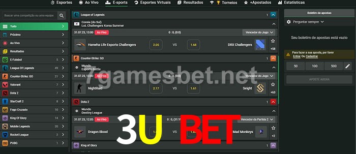 O 3U Bet oferece uma grande seleção de opções de apostas em e-sports com probabilidades competitivas